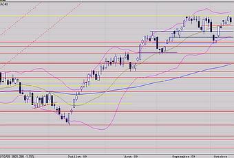 Pas du tout décidée à céder cette résistance!! Cette nouvelle bougie noire formée ce jour le confirme et indique surtout qu'il va falloir aller trouver les ressources nécessaires au franchissement un peu plus bas.Il faut souligner qu'aucune figure baissière n'apparaît ce soir et s'il faut vraiment aller se ressourcer, c'est sans doute dans la zone des 3725 points à 3776 points que cela devrait se produire.