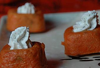 Les démouler une fois tiédis. Au moment de servir ajouter la cc de labneh (à la poche à