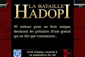 La bataille Hadopi est une publication exclusive d'un collectif d'auteurs dirigée contre la loi destinée à contrôler l'internet français. Elle sera officiellement lancée le 29 octobre au Fouquet's et tous les bénéfices issus de la vente de ce livre iront à la Quadrature du Net.