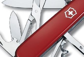 La première est constituée des possesseurs de couteaux suisses. Le couteau suisse officiel est d’un encombrement réduit : plié il ne dépasse pas les douze centimètres. La croix blanche de la Confédération Helvétique orne son manche d’un beau rouge vif. Ses lames, fabriquées dans un acier spécial, sont forcément inoxydables. Bien aiguisées, elles tranchent, coupent et taillent sans faiblir. Mais ce qui fait vraiment le charme du couteau suisse ce sont les multiples outils que dissimule l’épaisseur de son manche. Ces accessoires le rendent la providence des soirs d’étape où l’on n’a vraiment rien à se dire Quand la fatigue est si pesante que toute conversation un peu sérieuse représente un effort trop important pour être même envisagé, le couteau suisse est là. On peut examiner ses ciseaux (coupants), son alène (pointue), son tire-bouchon (efficace), sa lime (usante), sa scie (dentée), sa pince à épiler (précise), son ouvre-boîte (sécurisé), son décapsuleur (implacable) et le reste. J’ai compté seize outils, tous différents, sur un de ces ustensiles multifonctionnels.