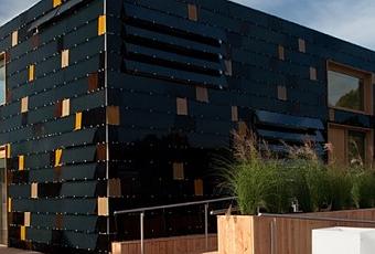 Lauréat du Solar Decathlon, concours de design international de maisons à énergie solaire, le projet SurPLUShome de Team Germany est un monolithe noir entièrement recouvert de modules photovoltaïques.