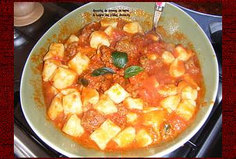 Pour cuire les gnocchis il suffira de les plonger dans un grand volume d'eau bouillante salée. Laissez les cuire jusqu'à ce qu'ils remontent à la surface , égouttez les et agrémentez de la sauce bolognaise ! ( Pour les plus gourmands du parmesan ou du gruyère râpé seront les bienvenues !)