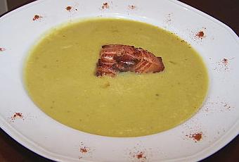 Faites-les revenir 5 minutes dans une grande poêle antiadhésive sans lmatière grasse. Mixez le mélange aux pois cassés, salez et poivrez.