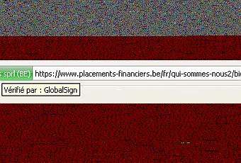 La zone précédant la barre d'adresse se colore de vert, signalant le propriétaire du certificat d'authentification. Un survol de la souris affiche le nom de l'organisme gérant le certificat.