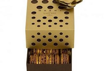 Après Louboutin, c'est au tour de Marni de s'associer avec la marque française Ladurée. Consuelo Castiglioni, la créatrice de la Maison, a dessiné et réalisé des macarons de chocolat recouverts de feuilles d'or. La boîte de macarons Marni sera vendue dés le 1er Décembre 2009 dans toutes les boutiques Ladurée de Paris, Londres, Dublin, Suisse et Tokyo.