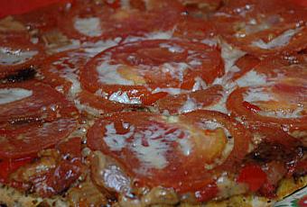 Et cette tarte là, et un vrai délice, bien moelleuse en bouche grâce à la pâte briochée, légère et pleine de saveurs : tomate, poivron, oignons, tapenade et basilic : que demander de plus ?