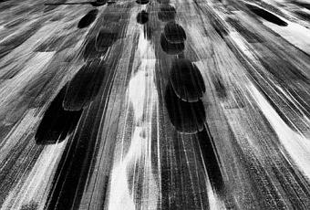 Vues sur Today and Tomorrow, ces photographies en gros plan de pistes d’atterrissage de Yann Arthus-Bertrand. Traces de mouvement à l’arrêt, d’énergie de l’instant figées dans temps.