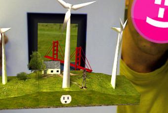 Une fois imprimé, choisissez parmi les deux réalités augmentées que vous désirez voir : Launch Wind Turbine / Launch Solar Energy.