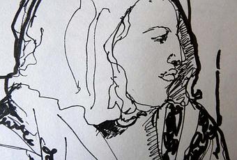 J’ai commencé un carnet de croquis dans le RER :ces dessins sont réalisés avec des feutres à l’encre de chine, ils sont des exercices du regard et de la main, des sortes de gammes picturales.