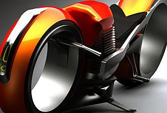 Voilà bien un concept bike qui ne manque pas d'intérêt ... enfin surtout dans les grandes lignes. Parce que si j'aime beaucoup les grandes roues totalement inspirées de la roue orbitale de F.Sbarro, la couleur très tendance et le rappel des ailettes moteur, je ne suis