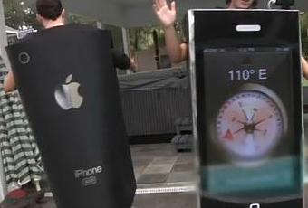 Si tu veux avoir l’air aussi branché que les deux mecs de la vidéo ci-dessous, pas de panique, rien de bien compliqué : il te suffit de te construire une grosse caisse noire avec des trous pour la tête, les bras et les jambes, sur le devant de laquelle tu fixeras une TV LCD. A cette TV, tu relieras ton iPhone, que tu auras sans doute préalablement jailbreaké. Ainsi, elle affichera en direct ce que tu es en train de faire sur ton iPhone, que tu auras pris soin de fixer sur le dessus de l’ensemble, de façon à pouvoir le manipuler tranquille.