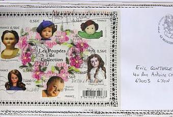 I've to admit that I was not really taken with the issue by the French Post of a souvenir sheet (one more !) devoted to antique dolls...