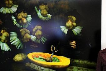 L'artiste de 35 ans puise son inspiration dans les légumes ordinaires, de tous les jours. Une peinture "verte" avec l'aide de chou, salade, épices, oignons, coriandre, patates, radis...
