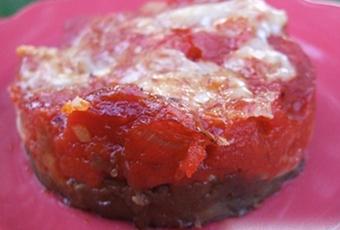 Recouvrir avec la sauce tomate, lisser avec le dos d'une càs, puis recouvrir à nouveau avec de fines tranches de parmesan.