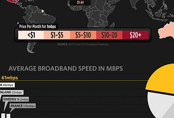 Il m’arrive quelques fois de pester après mon fournisseur d’accès parce que ma connexion ne marche pas bien… mais je crois que je vais désormais relativiser… La France fait partie des pays qui ont un des débits les plus rapides à un coût le plus bas, comme le montre cette carte de Shrinkrage is Good. Bon, ceci étant, on peut toujours faire mieux.