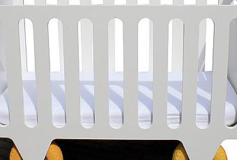 Huibert Van Muilwijk vient de lancer son nouveau lit pour bébés Q4 à la Dutch Design Week de Eindhoven. Les gros pneus jaunes sont vraiment magnifiques mais est-ce vraiment facile de les faire tourner ? En effet, il semble ne pas y avoir de pivots ni de bloque-roues pouvant justifier le choix de si jolis pneus qui donnent à ce berceau toute sa singularité.