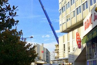 Et les grues géantes qui arpentent nos trottoirs : celles de l'église Saint-André, et celles de l'hôtel de Ville, enfin décrassé. J'attends de voir un jour la suepr grande qui débarbouillera le buildingue.