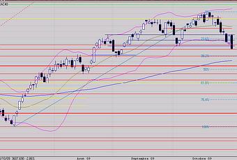 A noter également qu'un double sommet s'est formé sur le graphe des bougies quotidiennes. Cette figure désigne, elle, la cible des 3350 points; ce qui est cohérent avec la correction de la hausse en cours vers le retracement des 62%.