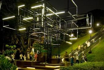Pour les jardins du Musée National de Singapour, la studio de création Farm a dessiné une sculpture inspirée de la forme et des lignes du banyan, arbre de grande taille répandu en Asie.
