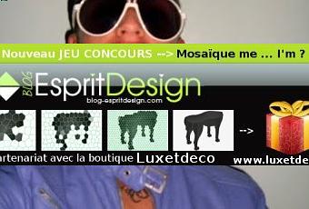 Le Blog Esprit Design et la boutique Luxetdeco.fr ont le plaisir de vous présenter une nouvelle édition du jeu concours : Mosaïque me.. i’m ?, se déroulant du 02 Novembre 2009 au dimanche 08 Novembre 2009.