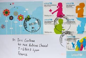La poste malaisienne a émis, le 9 octobre 2009 (Journée mondiale de la poste), une très intéressante (graphisme et thème) série de 5 timbres commémorant le 20ème anniversaire de l'adoption par les Nations Unies de la convention internationale relative aux droits de l'enfant.