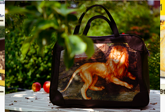 Ce sont des sacs de ville, en cuir très résistant, confectionnés en Italie par la prestigieuse maison Picard. Sur ces sacs, des reproductions imprimées sur toile d'oeuvres célèbres (mais surtout décoratives) sont cousues. Ce qui vous permettra de transporter une oeuvre d'art sous le bras lors de votre promenade en ville.