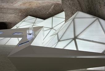 Exploitée pendant plus de 500 ans, cette mine est aujourd’hui partiellement accessible aux visiteurs. Pour guider et informer le public, les comptoirs et les bornes d’accueil se déploient ainsi dans les cavités. Flirtant avec les parois, des structures facettées et translucides à Leds intégrées éclairent et scintillent dans l’espace.