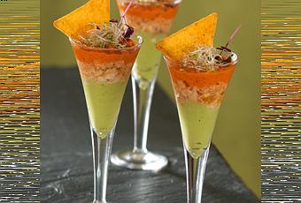 - Des verrine au râpé de crabe, guacamole maison, touche de fromage frais et son tortilla