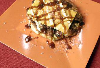 PS: pour les inculte ceci est une okonomiyaki, c’est le palliatif inventé par les japonais pour combler le manque de pizzas, de crèpes et autres tortillas dans leur cuisine. C’est à base de chou et c’est juste à tomber par terre! Si vous êtes sages peut-être bien que je vous passerais ma recette, mais va falloir être très gentil(le)s.
