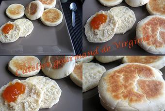 Ce week-end, plutôt que de refaire des pancakes américains, j'ai eu envie de tester une recette d'English muffins. J'ai pris celle de Scally, dans mon petit livre intitulé "Cookies, muffins and co". Je n'ai rien changé sauf la quantité de sel et sucre. Et le résultat était juste extra! Je ne pensais pas que c'était si facile!