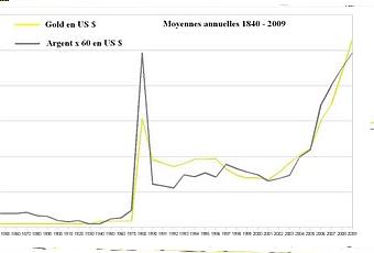 Prix en US $, de l'or et de l'argent de 1840 à 2009...