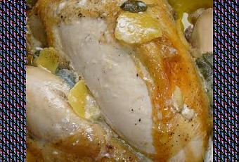 Préchauffez le four à 190°C . Faites chauffer le beurre et 1 cuil à soupe d'huile d'olive dans une cocotte , faites y dorer le poulet sur toutes ses faces . Salez poivrez. Réservez et videz la cocotte de ses graisses , mais ne la lavez pas . Remettez le poulet dans la cocotte , ajoutez le lait , la cannelle , l'ail , la sauge et le citron (je trouve qu'il est préférable de faire de gros zestes au couteau économe plutôt que des petits ).Enfournez 90 minutes . De temps en temps arrosez le poulet avec le lait .