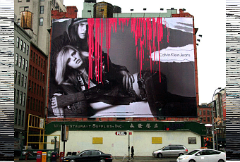 Opération marketing orchestrée pour l’ouverture du New Museum en 2007 (NY). Détournement de l’affiche Calvin Klein pendant 3 jours, ou une coulure rose va apparaitre de plus en plus importante jusqu’à révéler la forme finale symbolisant l’architecture du bâtiment réalisé par Kazuyo Sejima & Ryue Nishizawa.