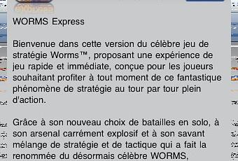 Team17 a sorti Worms Express une version lite à 0,79€ qui propose moins de fonctionnalités mais qui permet de faire de petite partie de worms à moindre cout. Dans cette version il n’y a pas le mode multijoueur, moins d’armes et moins de mode de jeu.
