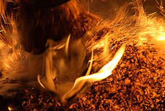 La technique : une fois les poteries cuites dans un four à environ 900°, on les extrait avec une pince metallique, et on les met en contact avec de la sciure...