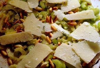 Au moment fatidique, celui de la cène donc, coiffez de pignons et pécorino, puis servez avec «une immense gentillesse et une profonde insouciance». Les convives en seront tout chose.