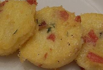 Quand la polenta devient ferme, découper à l'emporte-pièce des ronds (ou autres formes).