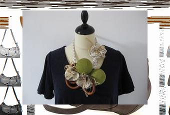 beaucoup de matériaux naturels comme le raphia ou le bois, alliés aux perles ou encore aux tissus dans les bijoux Campagne Urbaine. L’utilisation du tissu est quasi permanente dans la fabrication des bijoux. Il donne la couleur et la douceur à des créations nées de cet antagonisme entre la ville et la campagne. Le tout pour une harmonie des contraires tout en douceur et