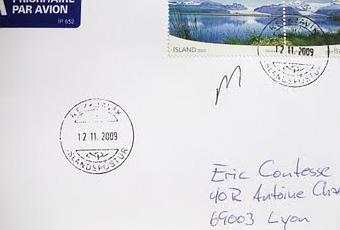 Ces 2 timbres, émis se-tenant le 16 septembre 2009, avec le logo Sepac sur un seul des 2 timbres, figurent sur la lettre ci-dessus postée le 12 novembre 2009 de Reykjavik.Merci beaucoup Benedikt :-)