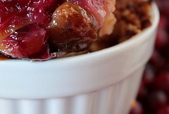 Tasser légèrement le mélange de fruits et recouvrir du crumble réserver, séparé également entre les 8 ramequins.
