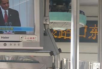 Hier et aujourd’hui, le Président Américain était omniprésent dans les médias Chinois, (la photo ci-dessus dans les transports en Commun de la capitale chinoise).