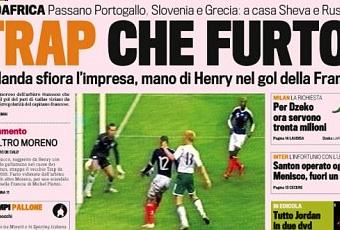 « Scandaleux », « honteux », « voleurs » « tricheurs » Tant d’adjectifs médiatiques qui lancent le débat sur la main de Thierry Henry hier soir face à l’Eire ! Si certains quotidiens européens voient dans la main de l’attaquant français, qui amène le but de Gallas, « la nouvelle main de Dieu », la plupart d’entre eux s’accorde à dire que la qualification de la France pour le Mondial 2010 est honteuse…
