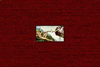 "LA MAIN DE DIEU PREND L'EIRE" est une parodie de la fresque sur la voûte de la chapelle Sixtine de Michel-Ange appelé : "LA CREATION D'ADAM"