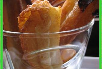 Faites tomber dans la friture des bandes de 10 cm de long. Opérez en plusieurs fois, pour que les beignets ne collent pas les uns aux autres.