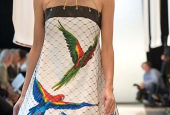 Je travaille avec Aurore Hétier, artiste peintre textile. Elle sublime mes vêtements avec des fleurs, des envolées de papillons ou d’oiseaux peints à main levée sur des soies, de la dentelle, des satins ou du lin. Ensemble, nous avons créé la « Robe cage aux oiseaux » qui a été présentée en juin au défilé d’inauguration de la Cité Internationale de la Dentelle, à Calais. Cette même robe a été retenue par le cabinet parisien de style NellyRodi et a été lauréate du prix Sema (Société d’Encouragement des Métiers d’Art) à Nantes, le 4 novembre. Mais nous avons aussi conçu ensemble une collection de pap pour « Un pavé dans la mode », l’espace créateurs de la Redoute…