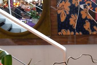 Une série de tableaux qui semble se fondre littéralement avec le décor du restaurant.