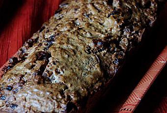 J'ai chipé la recette à Nanou . J'ai juste modifié les quantités de fruits secs : j'en ai mis moins et il y'en avais déjà plein plein plein !!!