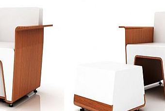 Voici un fauteuil très chic réalisé par le studio Miso Soup Design. Le fauteuil est très confortable et possède un repose-pieds qui vient astucieusement se nicher sous son piètement. Le repose-pied peut également faire office de petite table, où vous pourrez y laisser votre tasse à café ou votre journal préféré. Et lorsque l’extension devient un peu trop encombrante, hop, vous la glissez sous le fauteuil. Ce fauteuil ira à merveille dans des appartements luxueux ou des yacht.