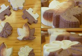 Un petit savon au lait d'amande histoire de tester mes nouveaux moules (qui viennent de chez Dansmanature)... mais un savon bicolore (sauf le mouton que je souhaitait tout blanc... couleur mouton) histoire d'y mettre une touche artistique personnelle...