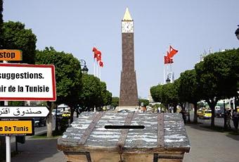 L’autre jour j’étais dans l’avenu Habib Bourguiba je voyais une grosse boite à suggestions au milieu du boulevard avec un panneau écrit dessus “pour l’avenir de la Tunisie” je me suis rapprocher. Le but était de donner une idée ou une suggestion pour l’avenir de la politique en Tunisie.